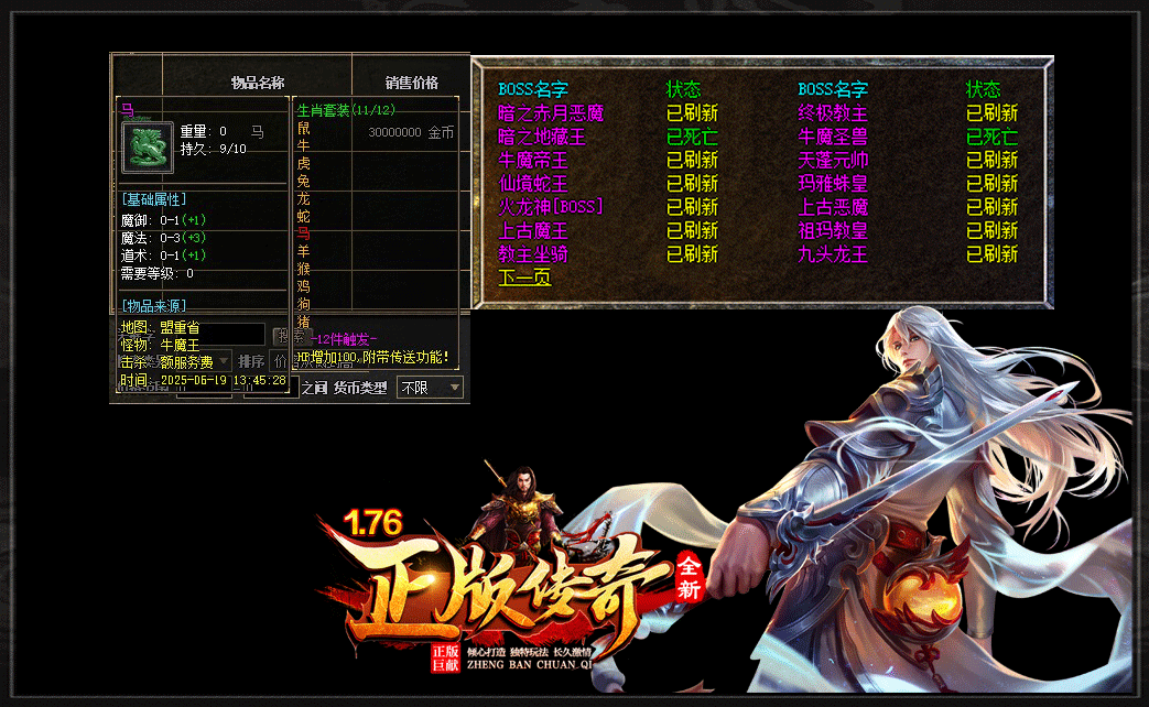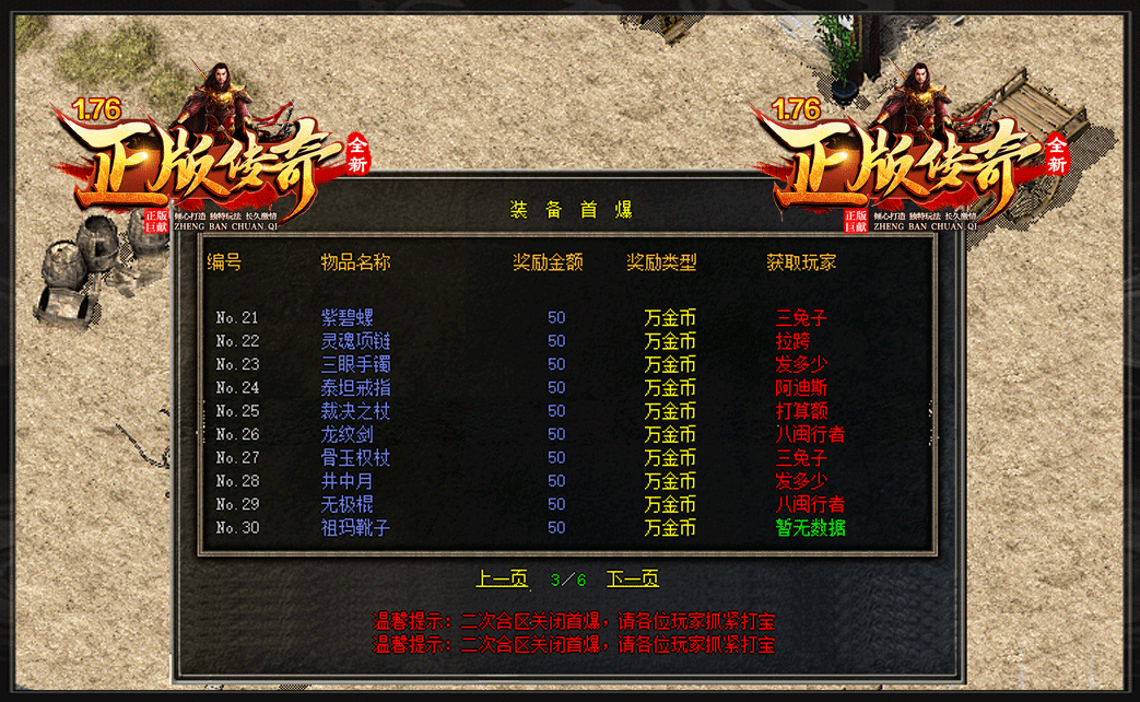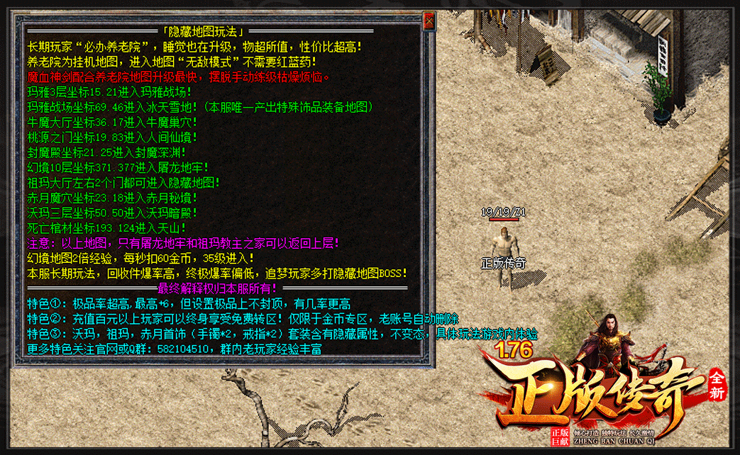 1 【游戏介绍】|由1.76版本改变而来,刷怪布局,爆率均与盛大1.76接近,在此基础上加入,神秘地图6-10张,地图基本上全部免费各种极品狂暴,回收金币相当高,适合散人。